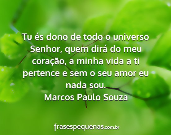 Tu és dono de todo o universo Senhor, quem dirá do meu coração, a minha vida a ti pertence e sem o seu amor eu nada sou.Marcos Paulo Souza