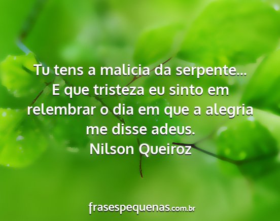 Tu tens a malicia da serpente... E que tristeza eu sinto em relembrar o dia em que a alegria me disse adeus.Nilson Queiroz