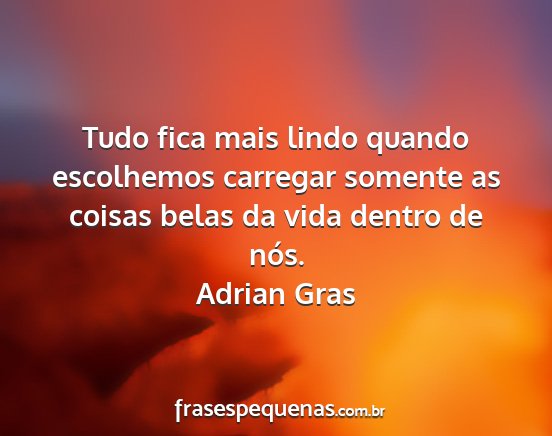 Tudo fica mais lindo quando escolhemos carregar somente as coisas belas da vida dentro de nós.Adrian Gras