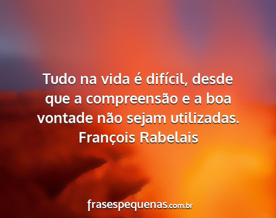 Tudo na vida é difícil, desde que a compreensão e a boa vontade não sejam utilizadas.François Rabelais