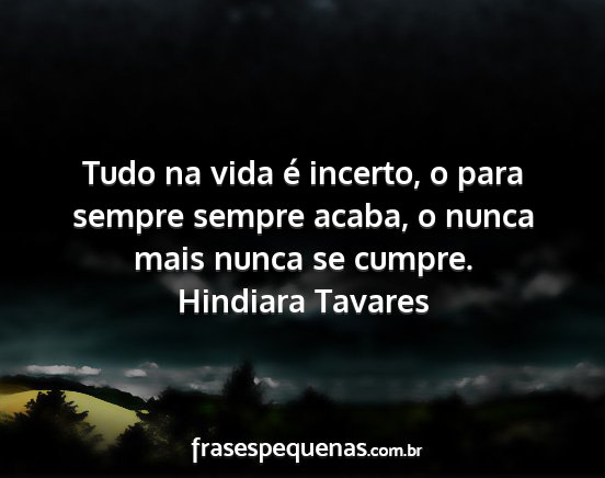 Tudo na vida é incerto, o para sempre sempre acaba, o nunca mais nunca se cumpre.
