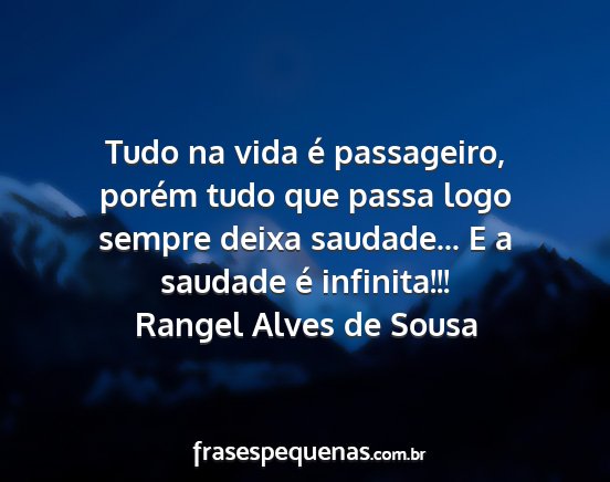 Tudo na vida é passageiro, porém tudo que passa logo sempre deixa saudade... E a saudade é infinita!!!Rangel Alves de Sousa