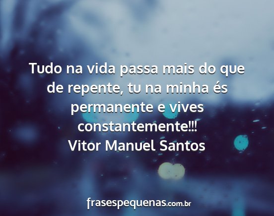 Tudo na vida passa mais do que de repente, tu na minha és permanente e vives constantemente!!!Vitor Manuel Santos