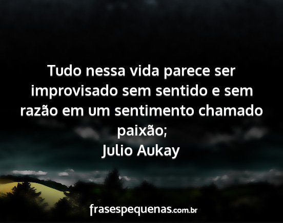 Tudo nessa vida parece ser improvisado sem sentido e sem razão em um sentimento chamado paixão;Julio Aukay