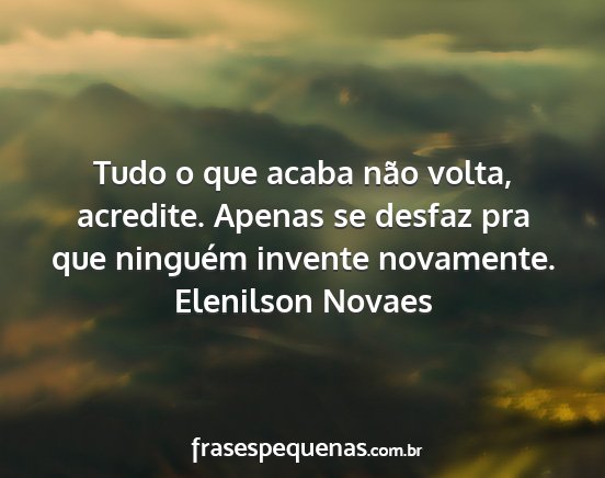 Tudo o que acaba não volta, acredite. Apenas se desfaz pra que ninguém invente novamente.Elenilson Novaes