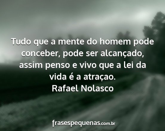 Tudo que a mente do homem pode conceber, pode ser alcançado, assim penso e vivo que a lei da vida é a atraçao.Rafael Nolasco