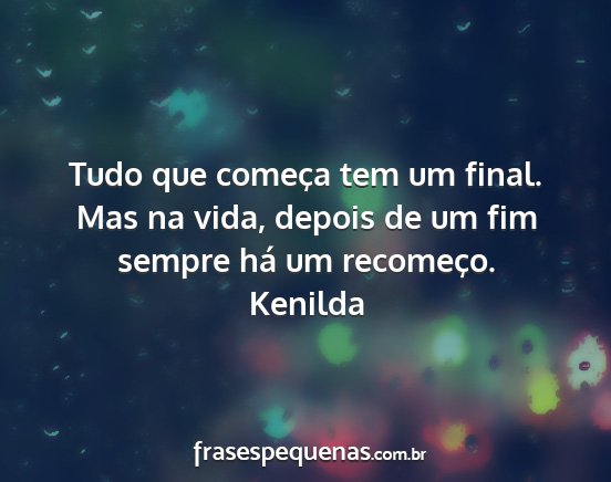 Tudo que começa tem um final. Mas na vida, depois de um fim sempre há um recomeço.