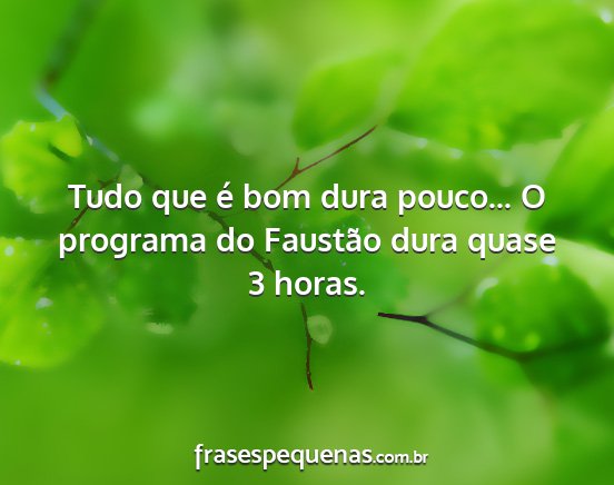 Tudo que é bom dura pouco... O programa do Faustão dura quase 3 horas.