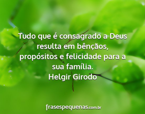 Tudo que é consagrado a Deus resulta em bênçãos, propósitos e felicidade para a sua família.Helgir Girodo