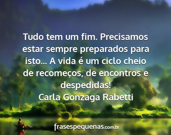 Tudo tem um fim. Precisamos estar sempre preparados para isto... A vida é um ciclo cheio de recomeços, de encontros e despedidas!Carla Gonzaga Rabetti