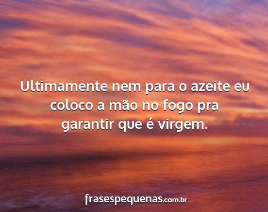 Ultimamente nem para o azeite eu coloco a mão no fogo pra garantir que é virgem.