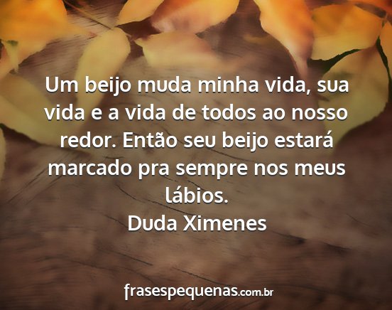 Um beijo muda minha vida, sua vida e a vida de todos ao nosso redor. Então seu beijo estará marcado pra sempre nos meus lábios.Duda Ximenes
