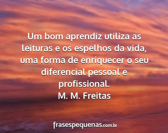 Um bom aprendiz utiliza as leituras e os espelhos da vida, uma forma de enriquecer o seu diferencial pessoal e profissional.M. M. Freitas