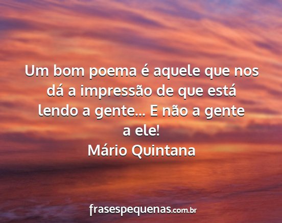 Um bom poema é aquele que nos dá a impressão de que está lendo a gente... E não a gente a ele!Mário Quintana