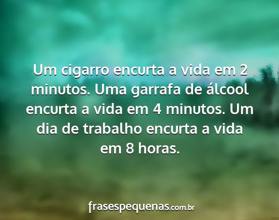 Um cigarro encurta a vida em 2 minutos. Uma garrafa de álcool encurta a vida em 4 minutos. Um dia de trabalho encurta a vida em 8 horas.