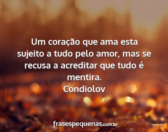 Um coração que ama esta sujeito a tudo pelo amor, mas se recusa a acreditar que tudo é mentira.Condiolov