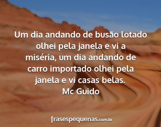 Um dia andando de busão lotado olhei pela janela e vi a miséria, um dia andando de carro importado olhei pela janela e vi casas belas.Mc Guido