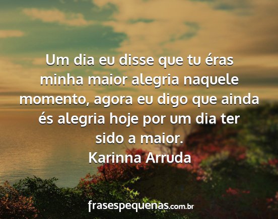 Um dia eu disse que tu éras minha maior alegria naquele momento, agora eu digo que ainda és alegria hoje por um dia ter sido a maior.Karinna Arruda