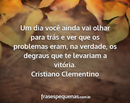 Um dia você ainda vai olhar para trás e ver que os problemas eram, na verdade, os degraus que te levariam a vitória.Cristiano Clementino
