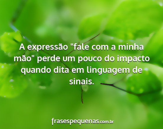 A expressão "fale com a minha mão" perde um pouco do impacto quando dita em linguagem de sinais.
