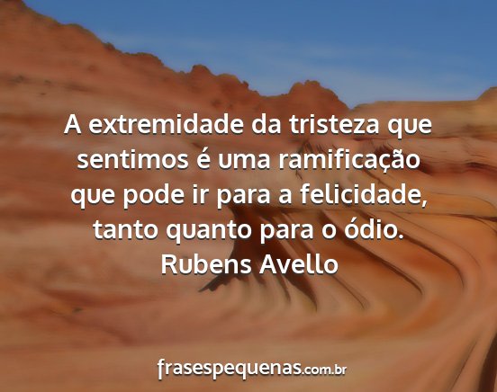 A extremidade da tristeza que sentimos é uma ramificação que pode ir para a felicidade, tanto quanto para o ódio.Rubens Avello