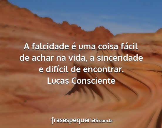 A falcidade é uma coisa fácil de achar na vida, a sinceridade e difícil de encontrar.Lucas Consciente