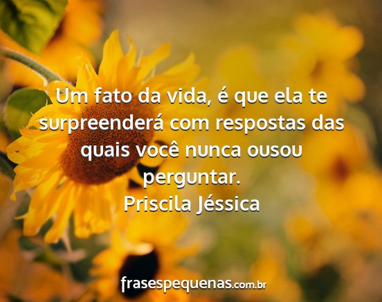 Um fato da vida, é que ela te surpreenderá com respostas das quais você nunca ousou perguntar.Priscila Jéssica