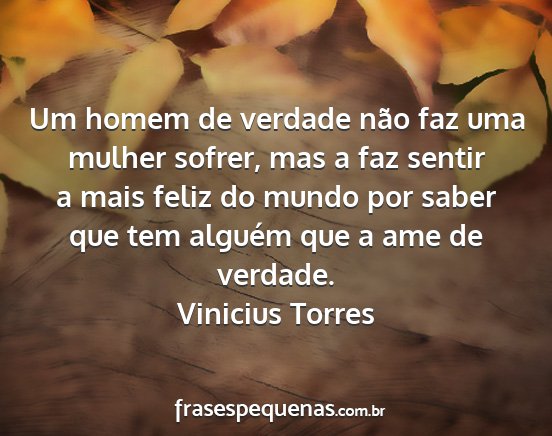 Um homem de verdade não faz uma mulher sofrer, mas a faz sentir a mais feliz do mundo por saber que tem alguém que a ame de verdade.Vinicius Torres