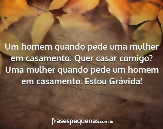 Um homem quando pede uma mulher em casamento: Quer casar comigo? Uma mulher quando pede um homem em casamento: Estou Grávida!