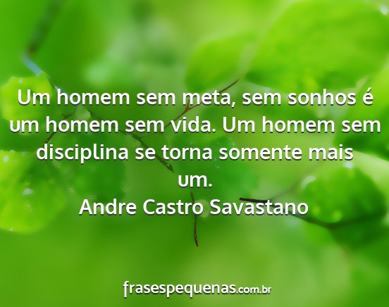 Um homem sem meta, sem sonhos é um homem sem vida. Um homem sem disciplina se torna somente mais um.Andre Castro Savastano