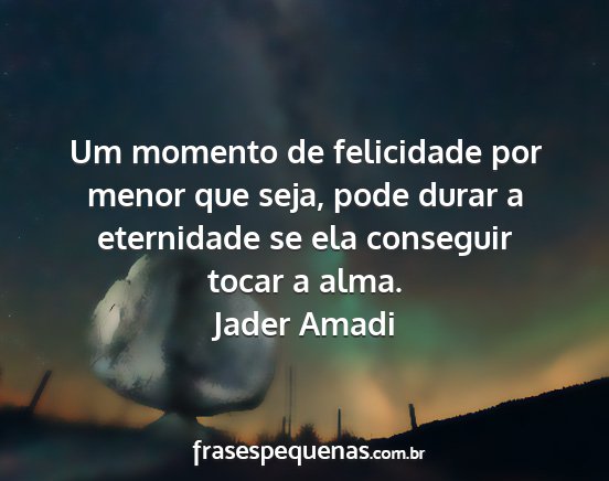 Um momento de felicidade por menor que seja, pode durar a eternidade se ela conseguir tocar a alma.Jader Amadi