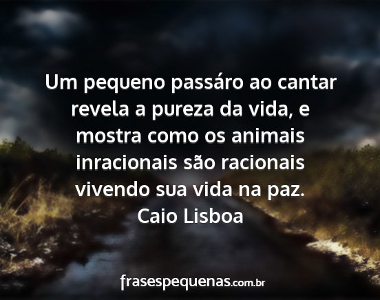 Um pequeno passáro ao cantar revela a pureza da vida, e mostra como os animais inracionais são racionais vivendo sua vida na paz.Caio Lisboa