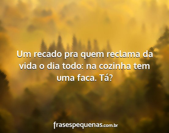 Um recado pra quem reclama da vida o dia todo: na cozinha tem uma faca. Tá?