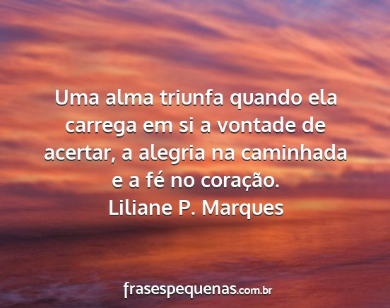 Uma alma triunfa quando ela carrega em si a vontade de acertar, a alegria na caminhada e a fé no coração.Liliane P. Marques