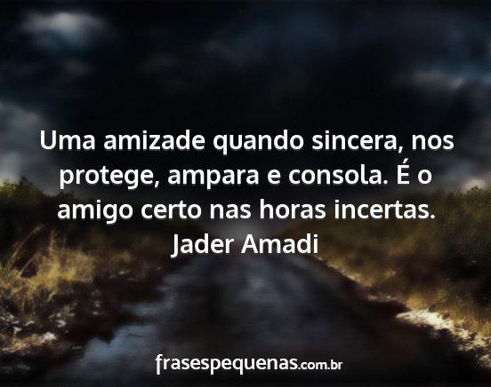 Uma amizade quando sincera, nos protege, ampara e consola. É o amigo certo nas horas incertas.Jader Amadi