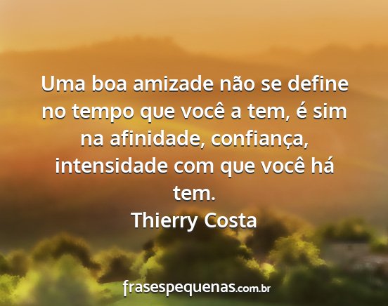 Uma boa amizade não se define no tempo que você a tem, é sim na afinidade, confiança, intensidade com que você há tem.Thierry Costa
