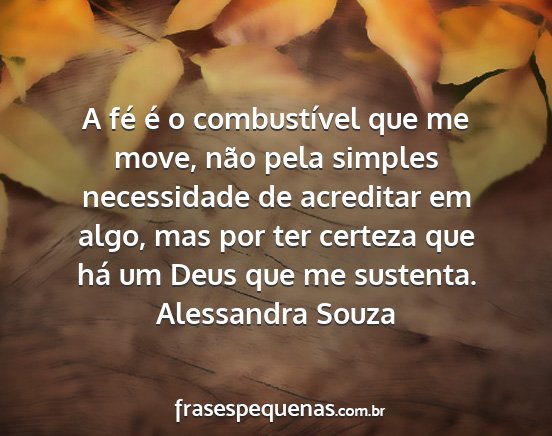 A fé é o combustível que me move, não pela simples necessidade de acreditar em algo, mas por ter certeza que há um Deus que me sustenta.Alessandra Souza