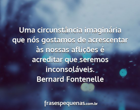 Uma circunstância imaginária que nós gostamos de acrescentar às nossas aflições é acreditar que seremos inconsoláveis.Bernard Fontenelle