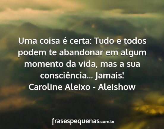 Uma coisa é certa: Tudo e todos podem te abandonar em algum momento da vida, mas a sua consciência... Jamais!Caroline Aleixo - Aleishow