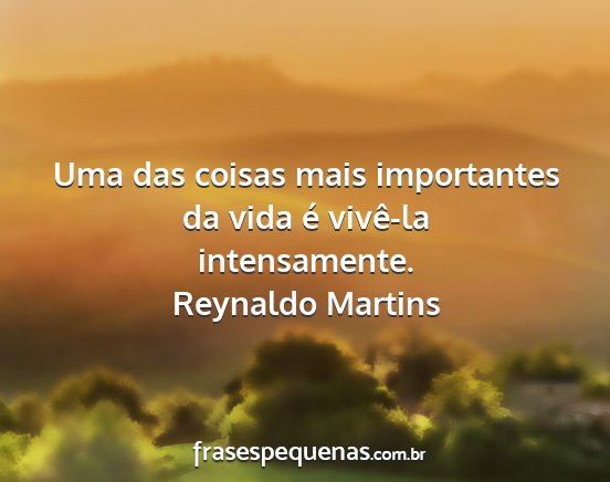 Uma das coisas mais importantes da vida é vivê-la intensamente.