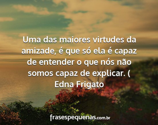 Uma das maiores virtudes da amizade, é que só ela é capaz de entender o que nós não somos capaz de explicar. (Edna Frigato