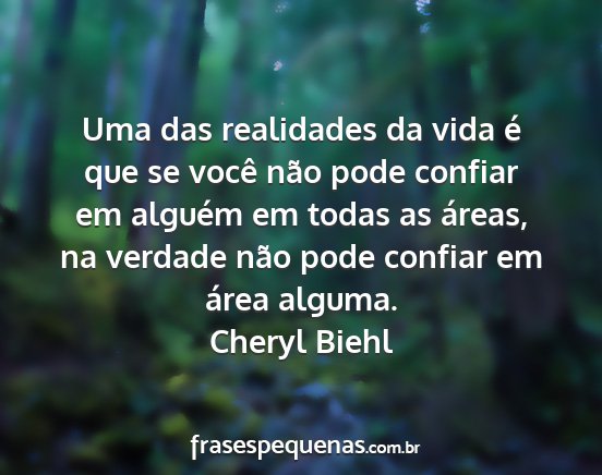 Uma das realidades da vida é que se você não pode confiar em alguém em todas as áreas, na verdade não pode confiar em área alguma.Cheryl Biehl