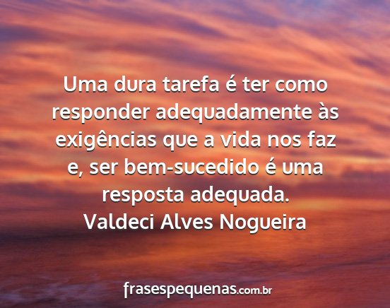 Uma dura tarefa é ter como responder adequadamente às exigências que a vida nos faz e, ser bem-sucedido é uma resposta adequada.Valdeci Alves Nogueira