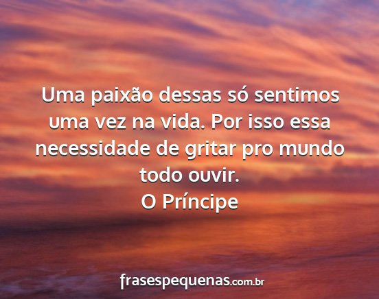 Uma paixão dessas só sentimos uma vez na vida. Por isso essa necessidade de gritar pro mundo todo ouvir.O Príncipe
