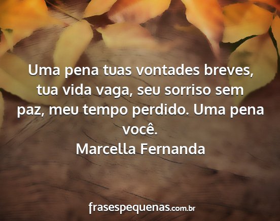 Uma pena tuas vontades breves, tua vida vaga, seu sorriso sem paz, meu tempo perdido. Uma pena você.Marcella Fernanda