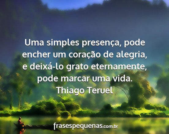 Uma simples presença, pode encher um coração de alegria, e deixá-lo grato eternamente, pode marcar uma vida.Thiago Teruel