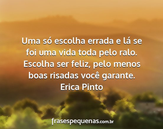 Uma só escolha errada e lá se foi uma vida toda pelo ralo. Escolha ser feliz, pelo menos boas risadas você garante.Erica Pinto