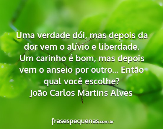Uma verdade dói, mas depois da dor vem o alívio e liberdade. Um carinho é bom, mas depois vem o anseio por outro... Então qual você escolhe?João Carlos Martins Alves