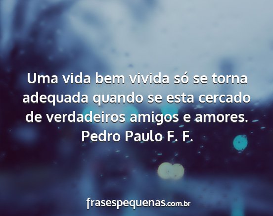 Uma vida bem vivida só se torna adequada quando se esta cercado de verdadeiros amigos e amores.Pedro Paulo F. F.