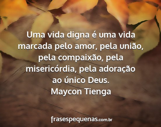 Uma vida digna é uma vida marcada pelo amor, pela união, pela compaixão, pela misericórdia, pela adoração ao único Deus.Maycon Tienga